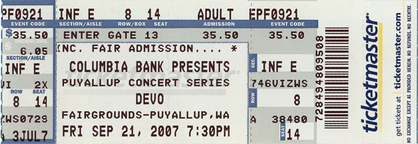 DEVO - 09/21/07 - Columbia Bank Concert Center, Puyallup Fair & Events Center, Puyallup, WA
