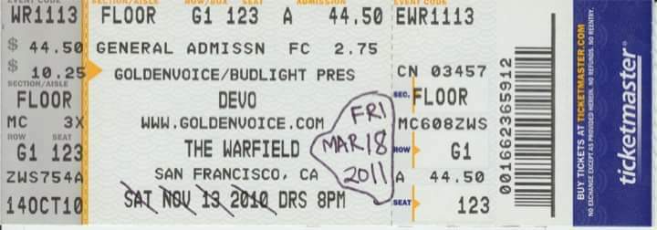 DEVO - 11/13/10 - Warfield Theatre, San Francisco, CA - CANCELLED