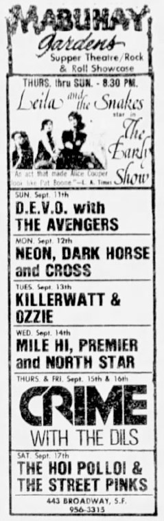 DEVO - 09/11/77 - Mabuhay Gardens, San Francisco, CA