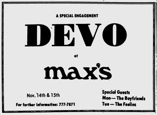 DEVO - 11/15/77 - Max's Kansas City, New York, NY