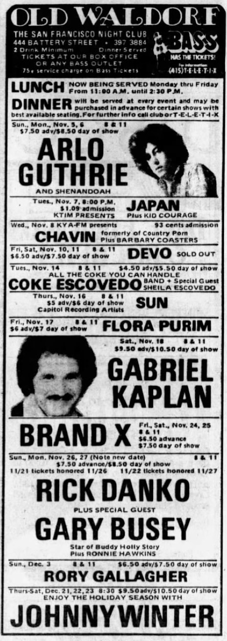 DEVO - 11/11/78 - Old Waldorf, San Francisco, CA