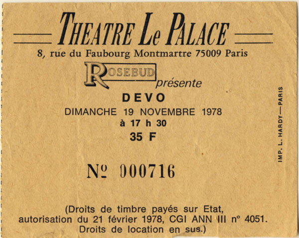DEVO - 11/19/78 - Theatre Le Palace, Paris, France