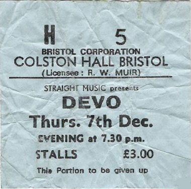 DEVO - 12/07/78 - Colston Hall, Bristol, United Kingdom