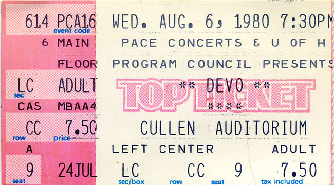DEVO - 08/06/80 - Cullen Auditorium, University Of Houston, Houston, TX