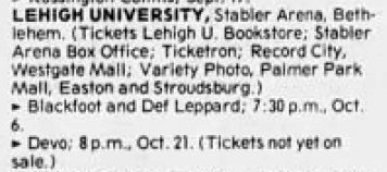 DEVO - 10/20/81 - Stabler Arena, Lehigh University, Bethlehem, PA - CANCELLED