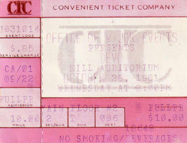 DEVO - 10/28/81 - Hill Auditorium, University Of Michigan, Ann Arbor, MI