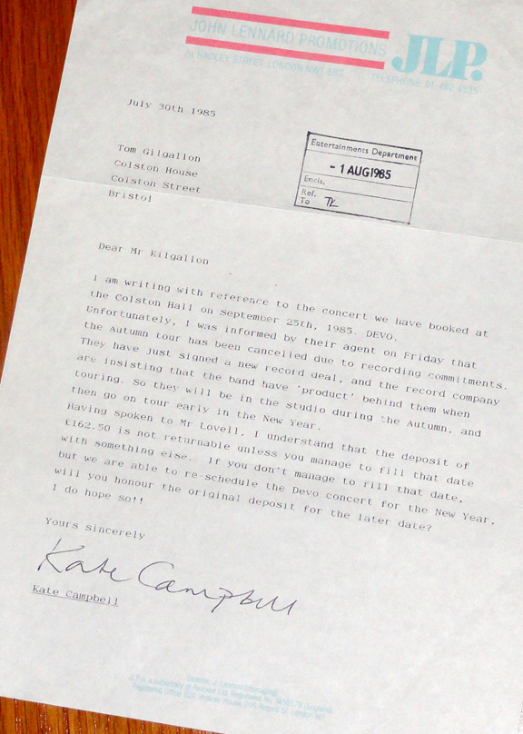 DEVO - 09/25/85 - Colston Hall, Bristol, United Kingdom - CANCELLED