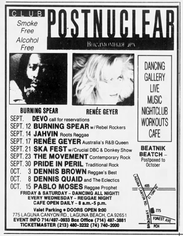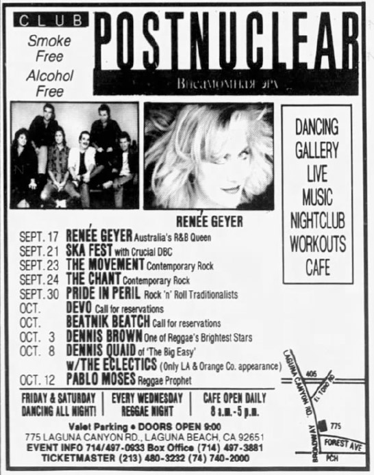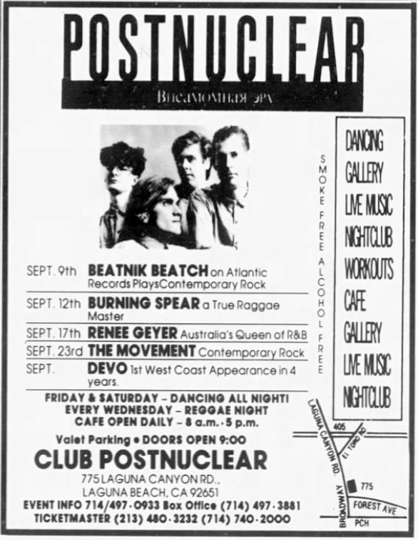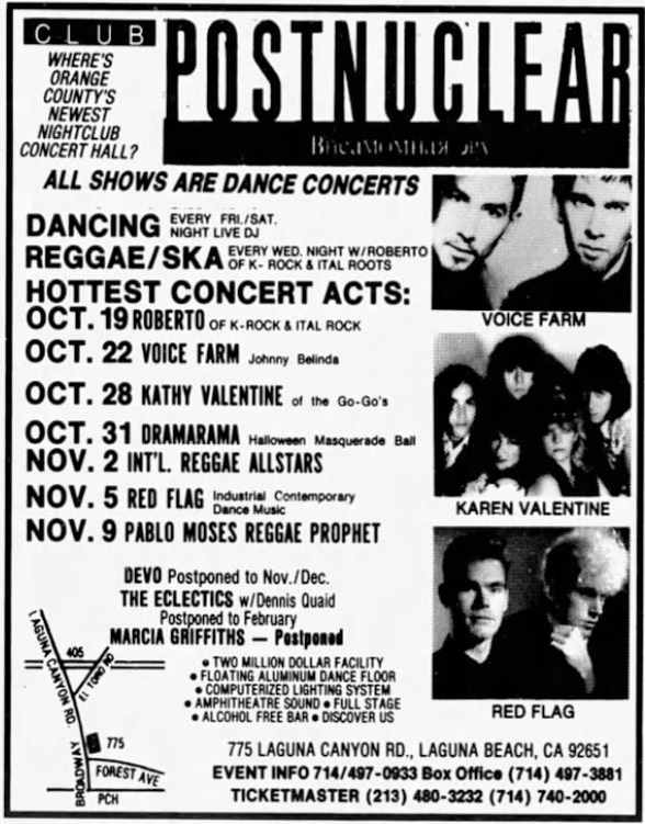 DEVO - 09/00/88 - Club Postnuclear, Laguna Beach, CA - CANCELLED