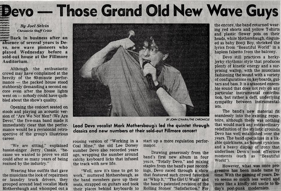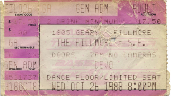 DEVO - 10/26/88 - Fillmore West, San Francisco, CA