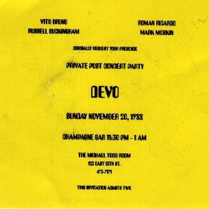 DEVO - 11/20/88 - The Michael Todd Room, The Palladium, New York, NY