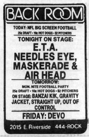 DEVO - 12/02/88 - The Backroom, Austin, TX