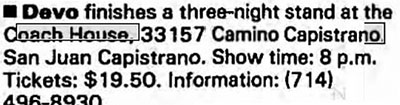 DEVO - 01/10/89 - The Coach House, San Juan Capistrano, CA